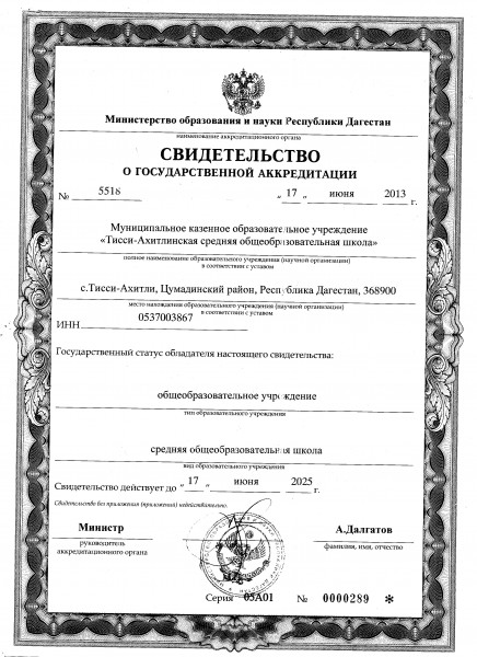 | Адрес местонахождения образовательной организации* | 368900 р.Дагестан , Цумадинский район, с. Тисси-Ахитли, ул. Тиссинская 10 |